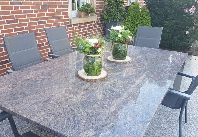 Jeden Stein führen wir in verschiedenen Stärken und in verschiedenen Oberflächenbearbeitungen (poliert, geschliffen, geflammt, antik, satiniert, etc.). Wir schneiden für Sie individuell zu, d.h. sie bekommen bei uns keine Standardmaße, sondern alles individuell zugeschnitten, ganz auf die bauseitigen Gegebenheiten und Ihren Wünschen abgestimmt.