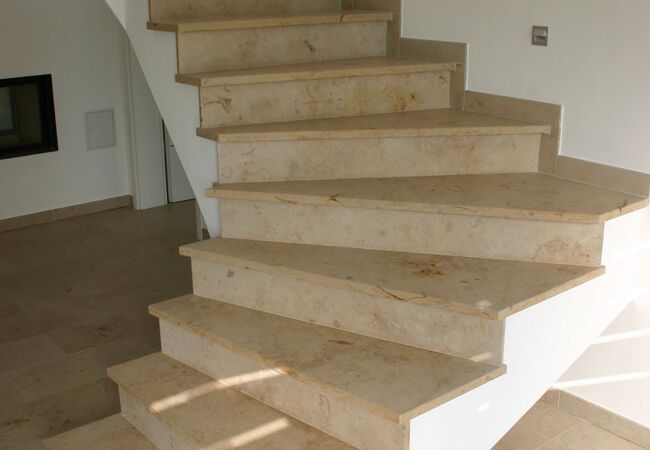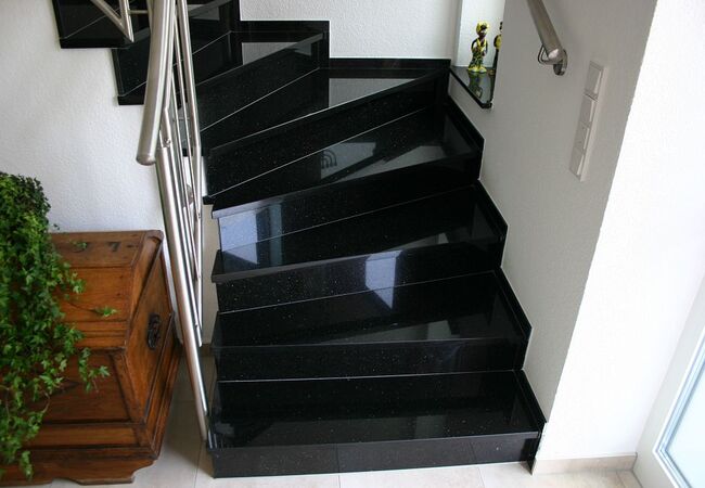 Eine Treppe bei der die Stufen aus ganzen Natursteinplatten besteht, wirkt gleich exklusiver und eleganter als eine geflieste Treppe. Zudem lässt sie sich weitaus leichter reinigen, da es keine Fugen gibt. Wir liefern und verlegen Ihnen Treppenstufen ab 2 cm Stärke sowie freitragende Treppen in 6 oder 7 cm Stärke.