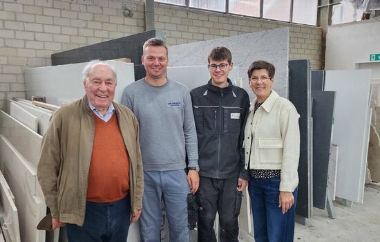 1971 wurde der Betrieb an Steinmetzmeister Heinrich Plässer übergeben. Er und meine Mutter Christel führten das Unternehmen über die Jahrtausenwende hinaus. Im Jahr 2022 erhielt mein Vater seinen Diamantenen Meisterbrief des Handwerks verliehen. Seit dem 1.1.2014 habe ich, Anne Plässer, den Betrieb meines Vaters übernommen und leite mit meinem Mann Stephan, der ebenfalls einen Meistertitel im Steinmetz- und Steinbildhauerhandwerk besitzt, in 5. Generation den Traditionsbetrieb weiter. Unser Sohn Felix befindet sich derzeit bereits in der Ausbildung zum Steinmetz und möchte den Betrieb in Zukunft übernehmen.